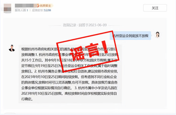 杭州亚组委经核对:该消息公布时间非杭州亚运会举办时间,杭州亚组委已于2023年4月26日发布公告,明确杭州亚运会期间,不停工不停产,民生保障不受影响。
